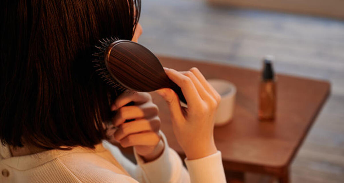 ブラッシングには、豚毛&ナイロン毛の〈ヘッドスパブラシ〉を。豚毛の水分と油分で髪のキューティクルを整え、静電気も防止。ナイロン毛でデリケートな頭皮を傷めることなくブラッシングできます。また、入浴前のブラッシングもおすすめ。髪のもつれと一緒に埃などの細かな汚れもとれるのでシャンプーの泡立ちがよくなります。