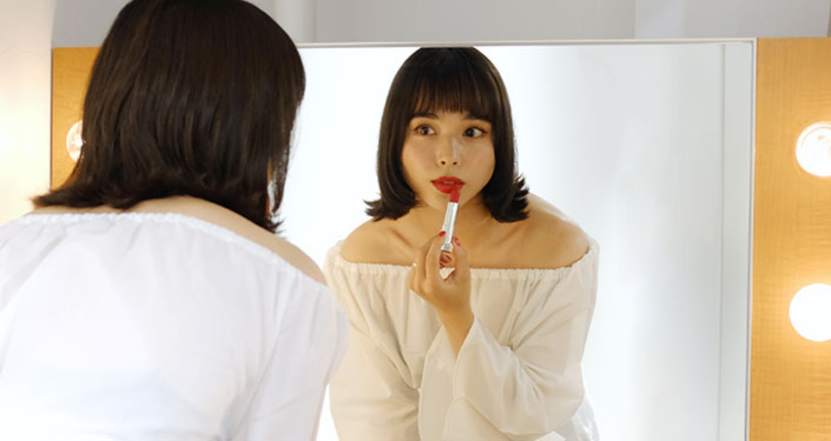 リップはメイベリン カラーセンセーショナルリップスティックCを使用。程よいマット感と塗り心地の良さが魅力。グロスはリンメル オーマイグロス 007。トレンドカラーでもあるオレンジ色をナチュラルに取り入れることができるのでオススメですよ。