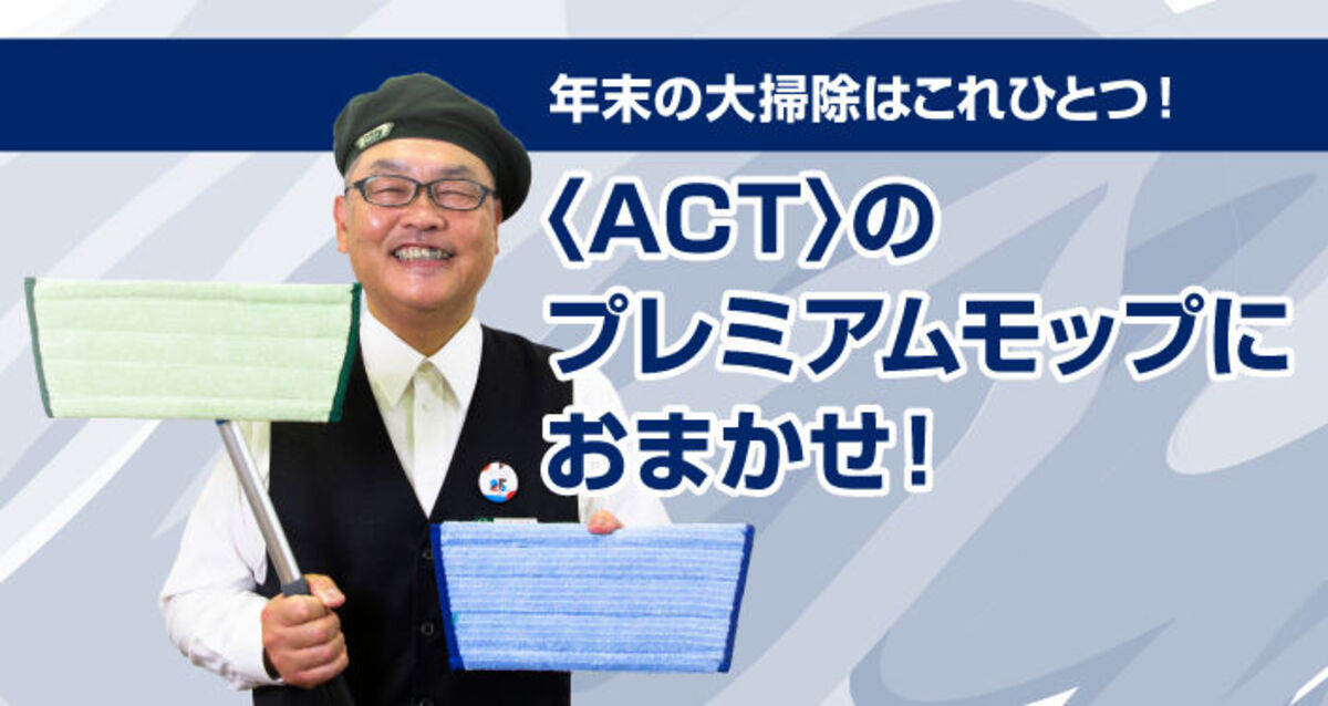 フローリングはもちろん、壁、天井、浴槽、車の窓などあらゆる場所を、水だけでお掃除できる〈ACT〉のプレミアムモップ。年末の大掃除にぜひお試しくださいね!