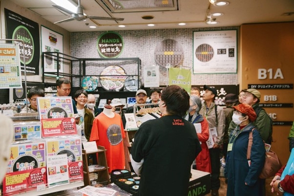 まず一行が向かったのはハンズ渋谷店のB1Aフロアにある「HANDS マンホールベース 渋谷」。山田秀人さんがプロデュースした、デザインマンホールの魅力発信基地です。まずは山田さんと白浜さんから、マンホール蓋の楽しみ方をお話いただきました。