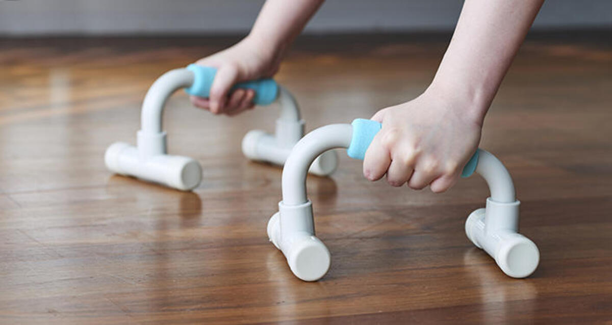 こちらは握る部分を斜めにすることで、手首と肩の負担を軽減しながら、腕立て伏せができるアイテム。腕力が弱くて苦手という方も簡単にもオススメです。使う時のポイントは、肩、腰、お尻が一直線になるように意識すること。二の腕や肩まわりがしっかりと鍛えられます。グリップはクッション素材で、滑りにくいので、安定したトレーニングが行えますよ。