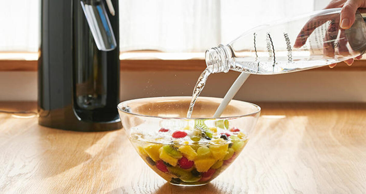 フルーツポンチは、カットしたフルーツを炭酸水やシロップに漬けたスイーツ。市販の炭酸水でももちろんよいですが、せっかくなら自宅でシュワシュワの炭酸水をつくってみませんか?〈ソーダストリーム スピリット ワンタッチ〉はその名の通り、ワンタッチで適量の炭酸水をつくれますよ。