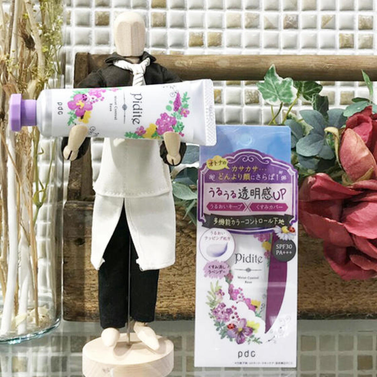 この淡いラベンダー色の下地が、お肌のくすみをサッと隠してくれるんです!
