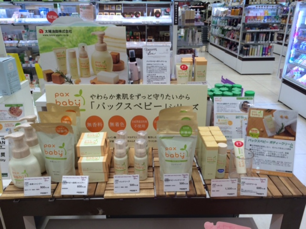 パックスベビーオイルは赤ちゃんだけでなく大人の乾燥肌にも使える万能オイル。マカデミアナッツ油が原料です。