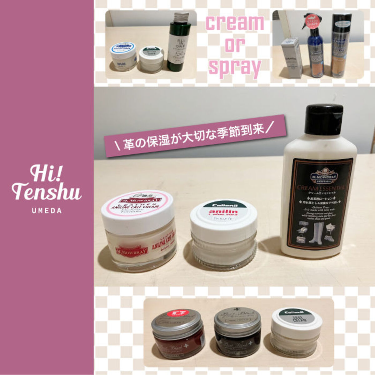 以上、革靴・革小物のお手入れのご相談がございましたら、ハンズ梅田店11階シューケアカウンターにどうぞお越しくださいませ。お待ちしております。