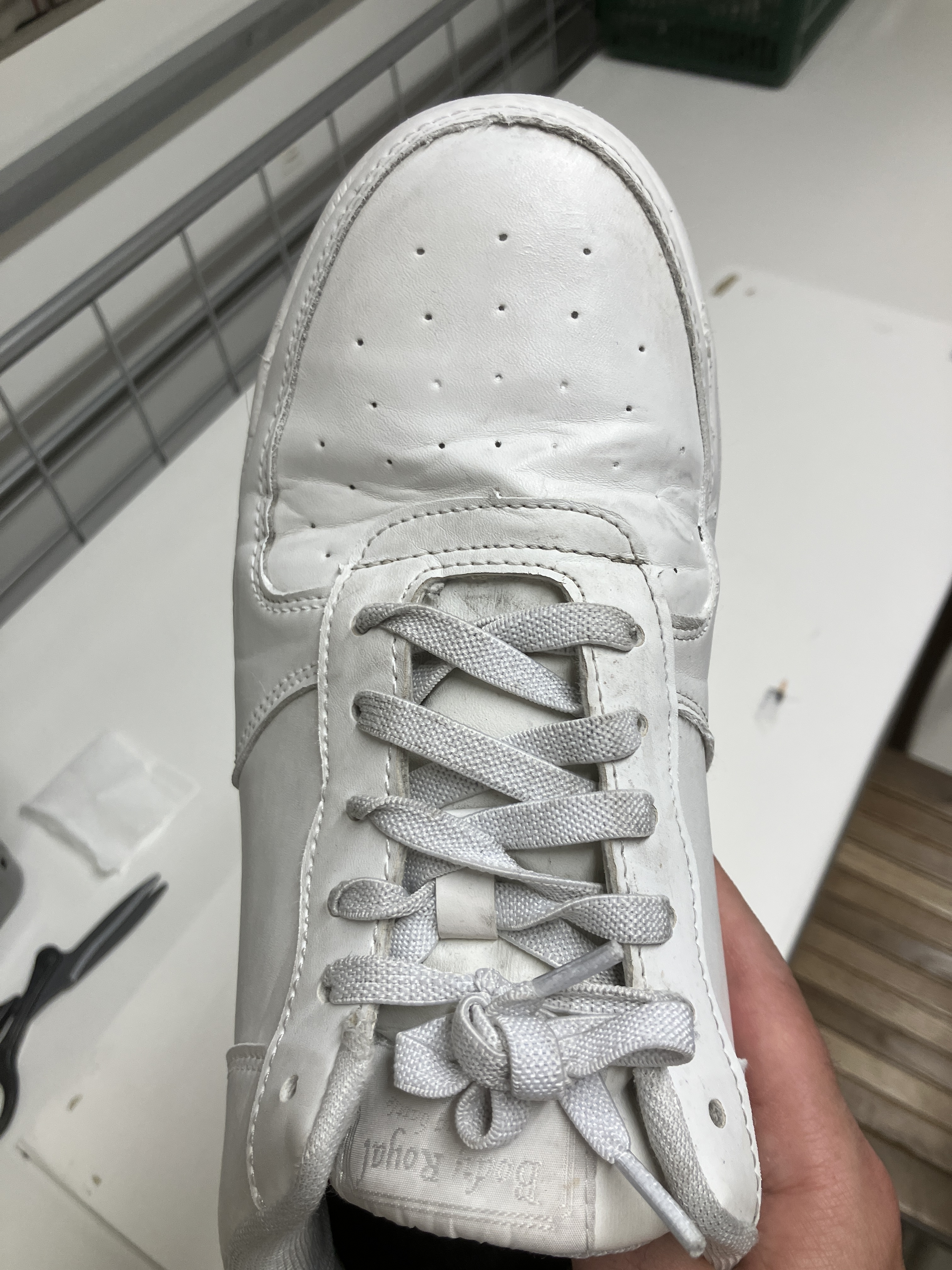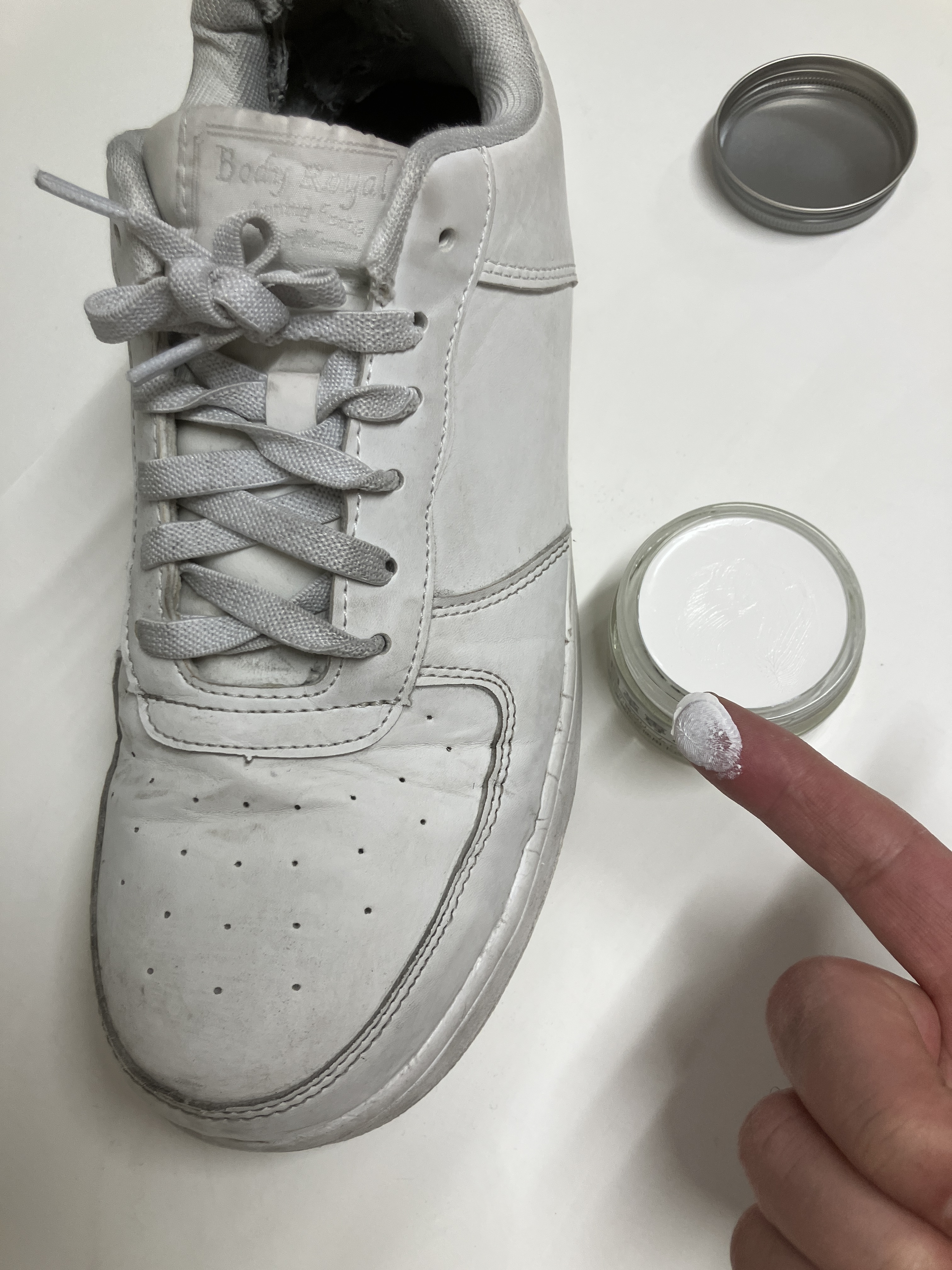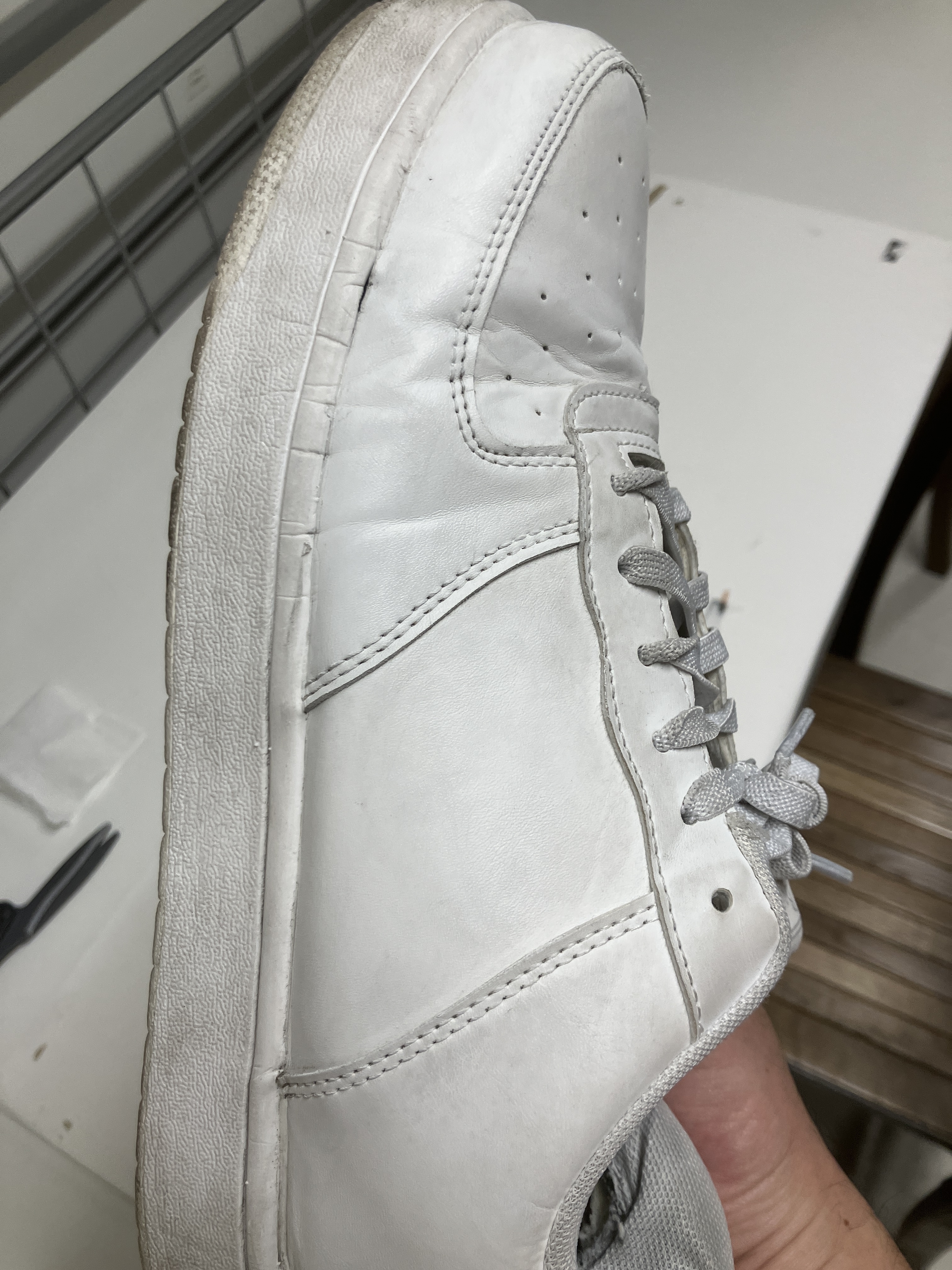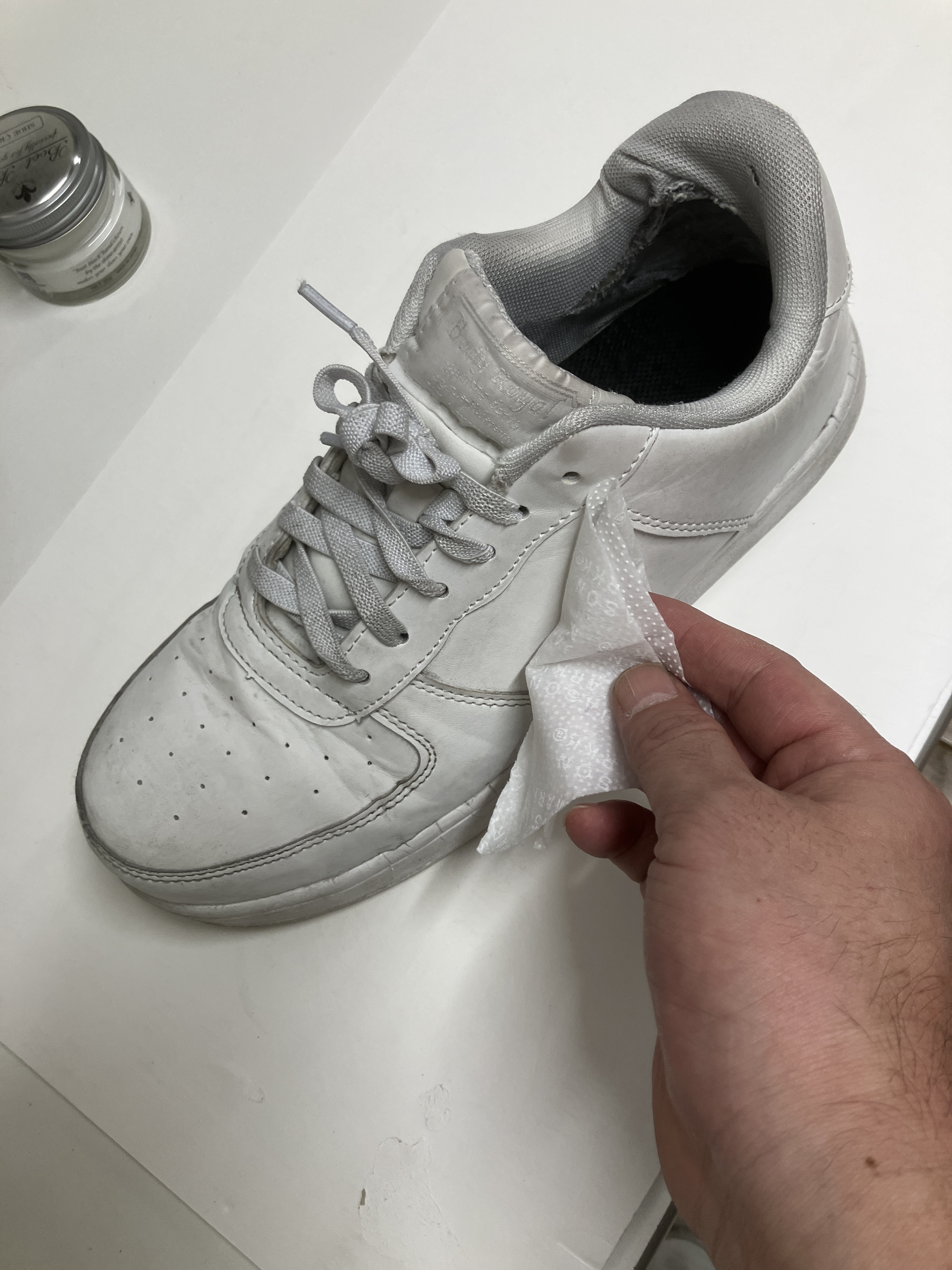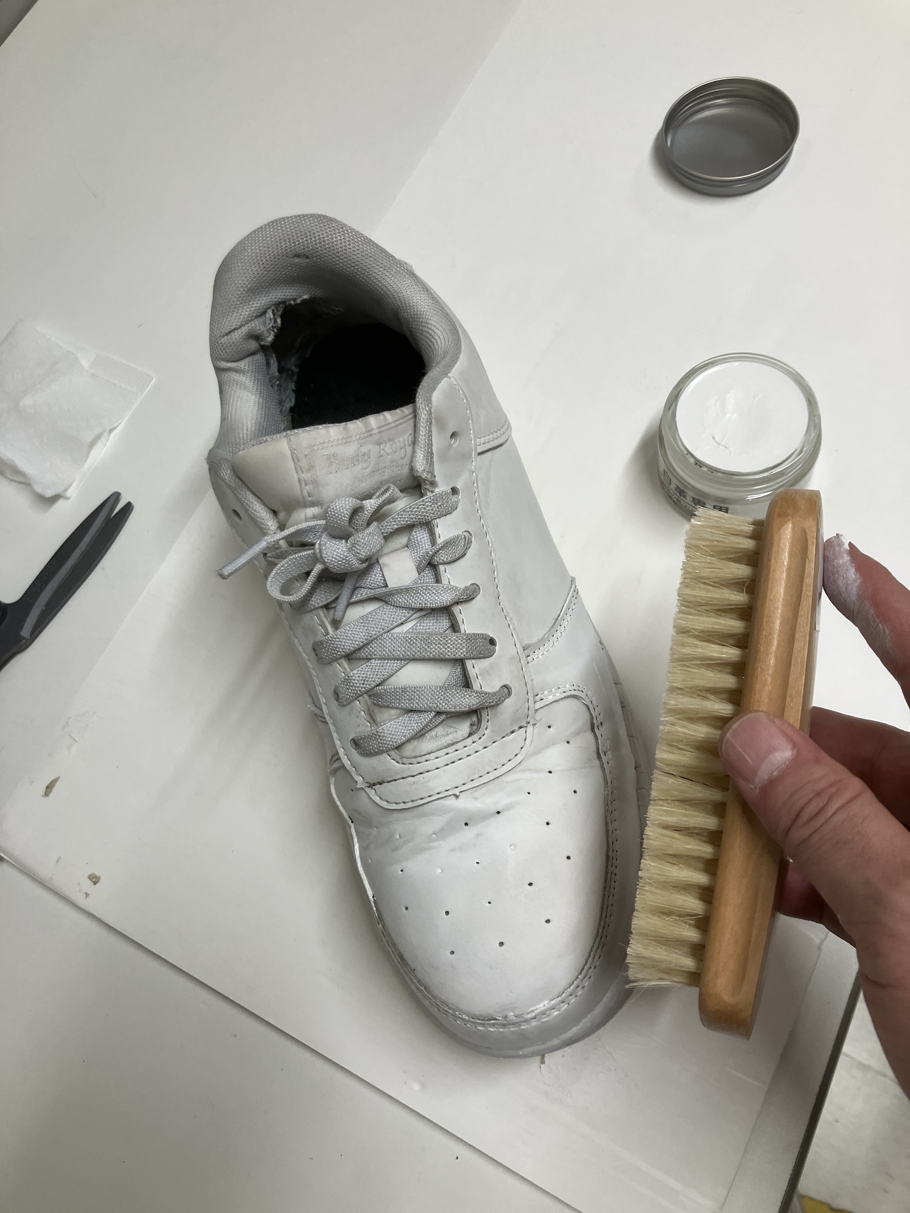 洗浄が終われば、次は白い靴墨を薄く、丁寧に塗り込んでいきます。