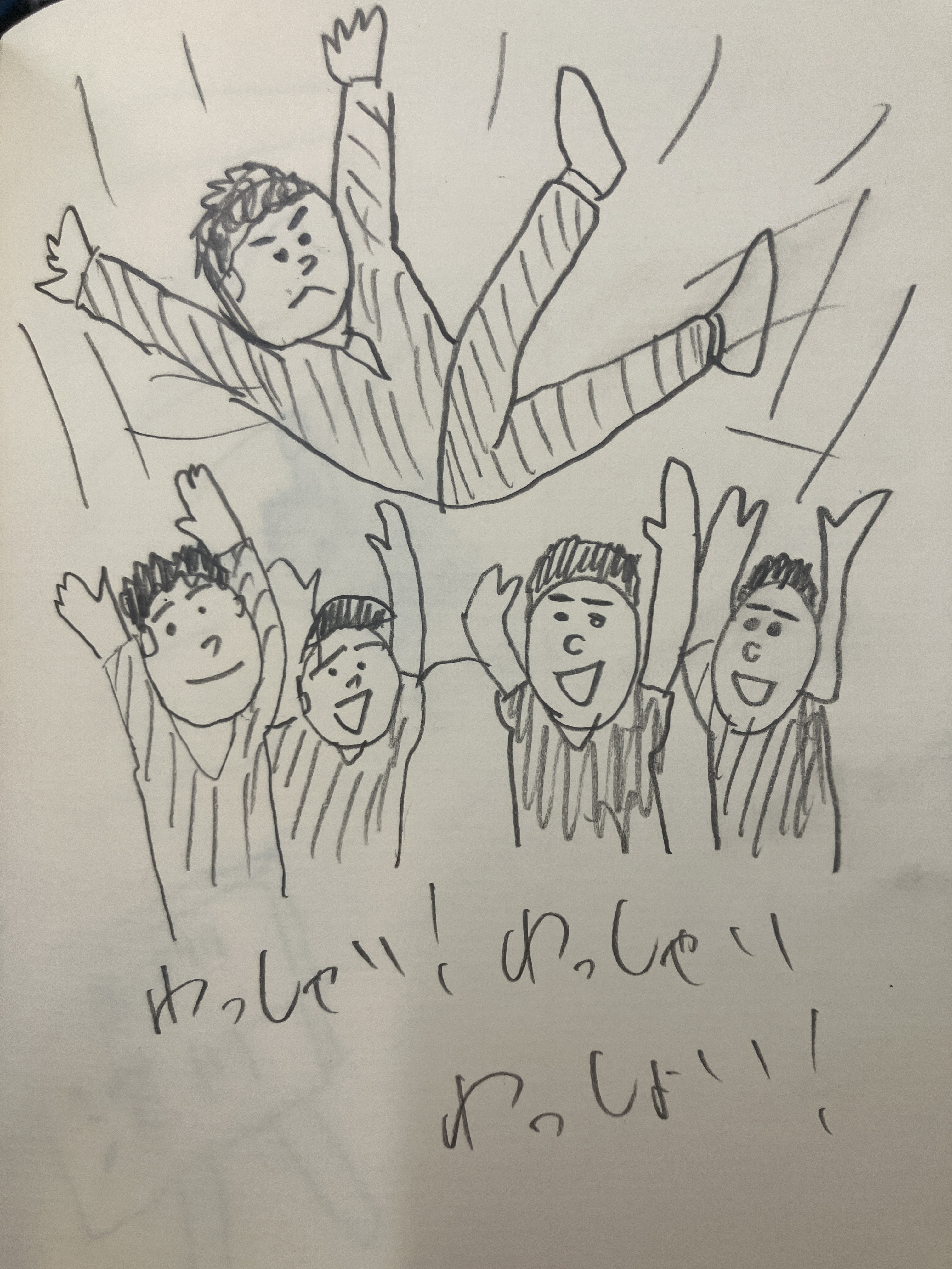 「おい、みんな集まれ! ひろさんを胴上げしようぜ!」
