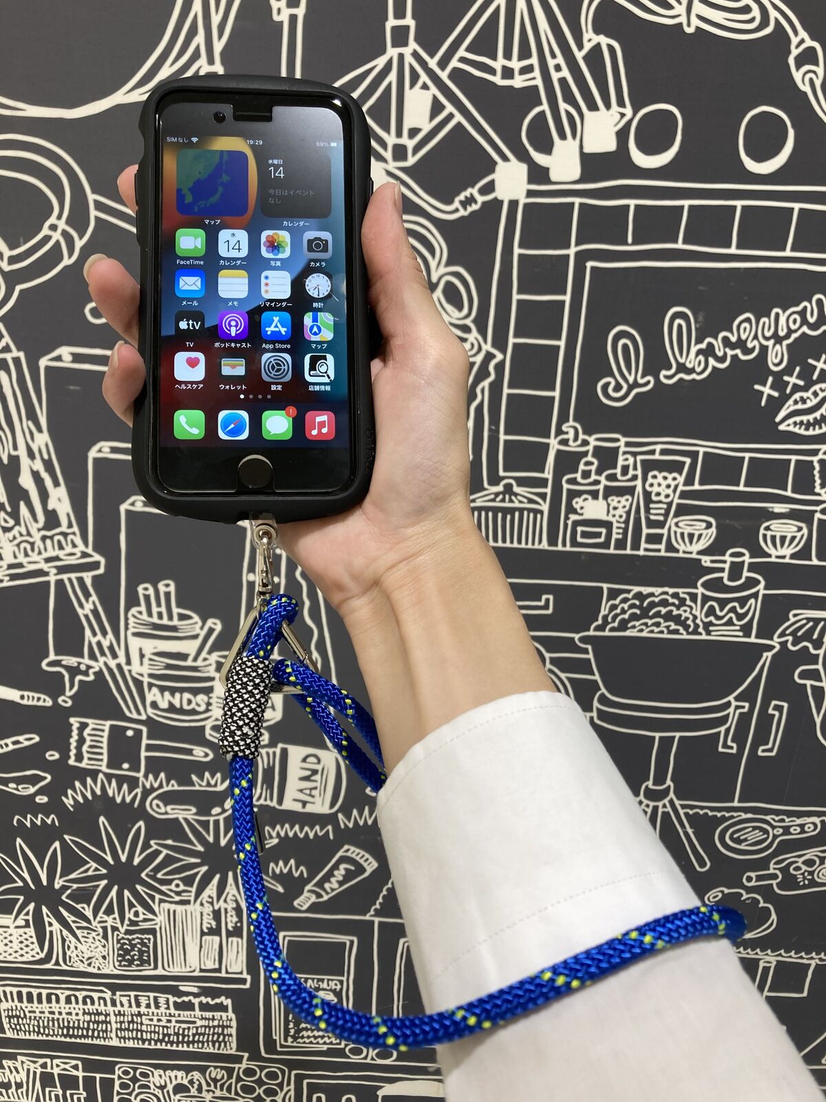以前、「アウトドアコード」を使ったスマホショルダーをご紹介しましたが、今回は難易度低めに感じました。
