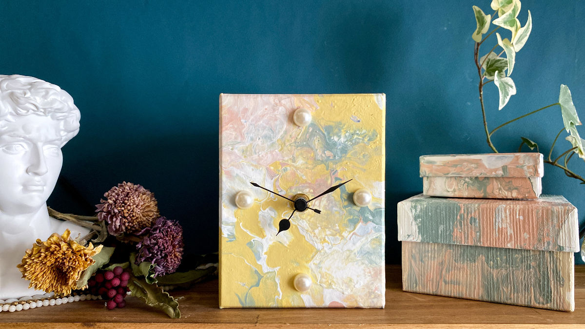 今回はギフトボックスを絵の具でペイントして、オリジナルの時計に生まれ変わらせます。インテリアに合わせて色を選んで、新生活をアートに彩ってみましょう!