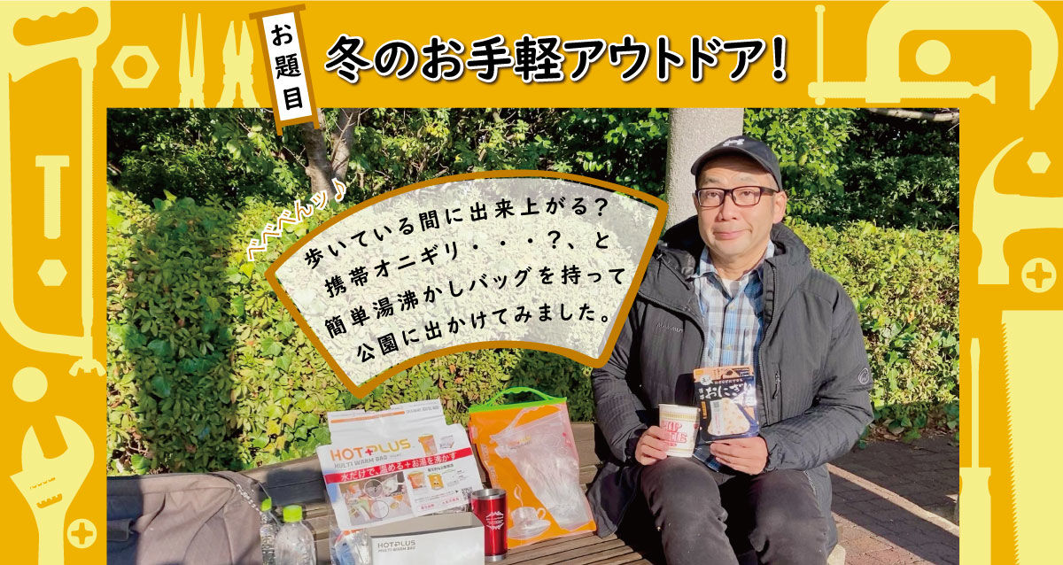 冬のお手軽アウトドア!歩いている間にでき上がる携帯おにぎりと簡単湯沸かしバッグを持って公園に出かけてみました!