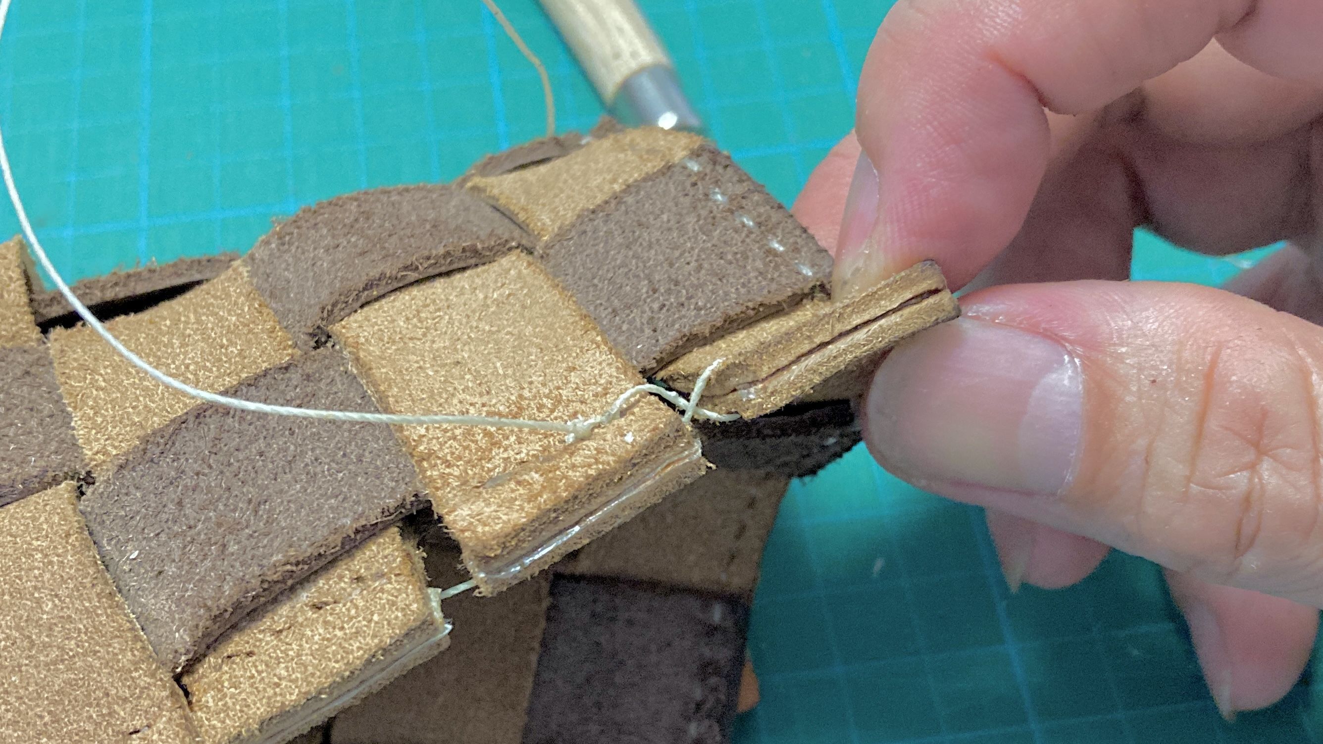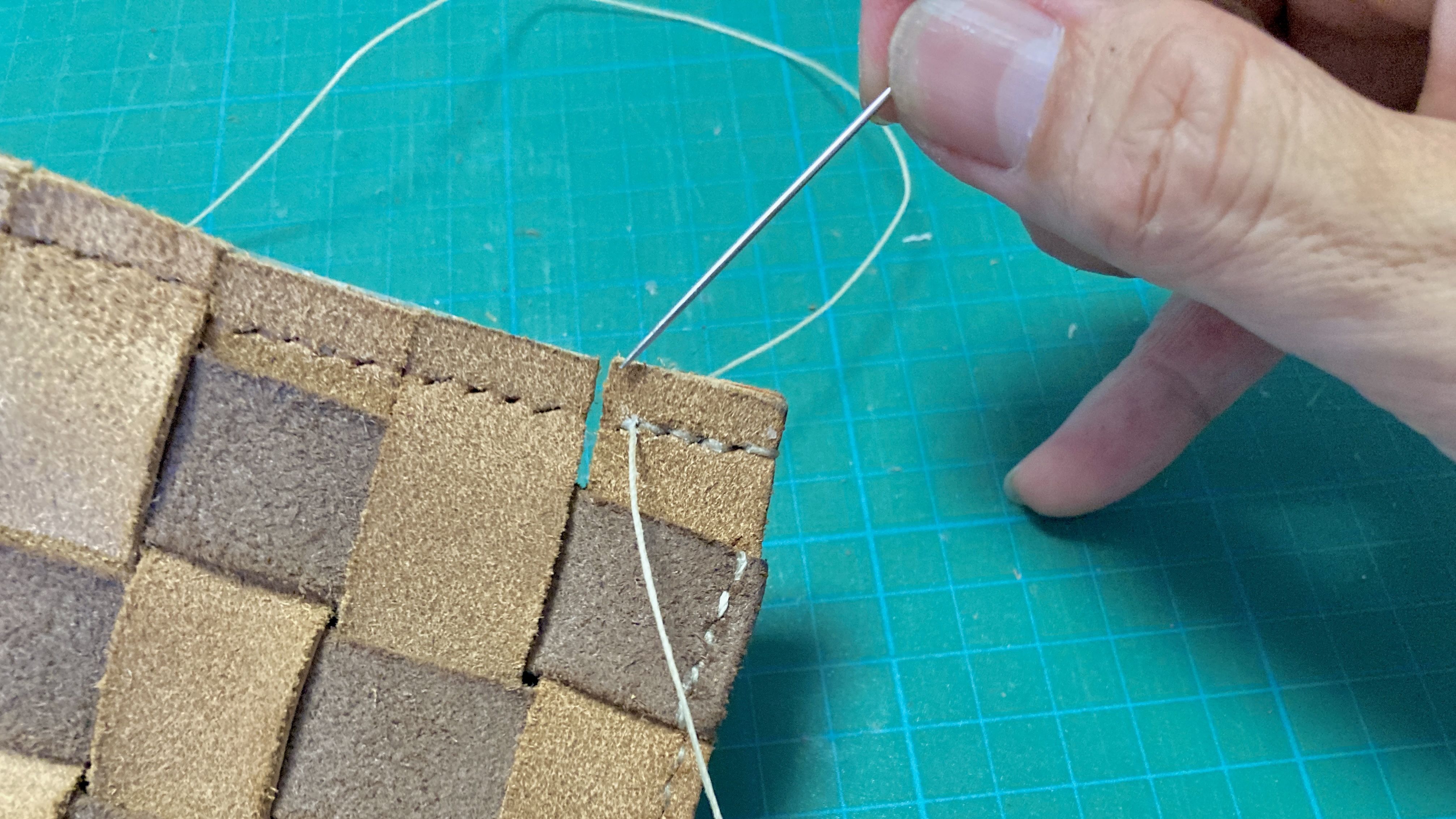 縫い始めると気づきますが、革がつながっていない部分があります。