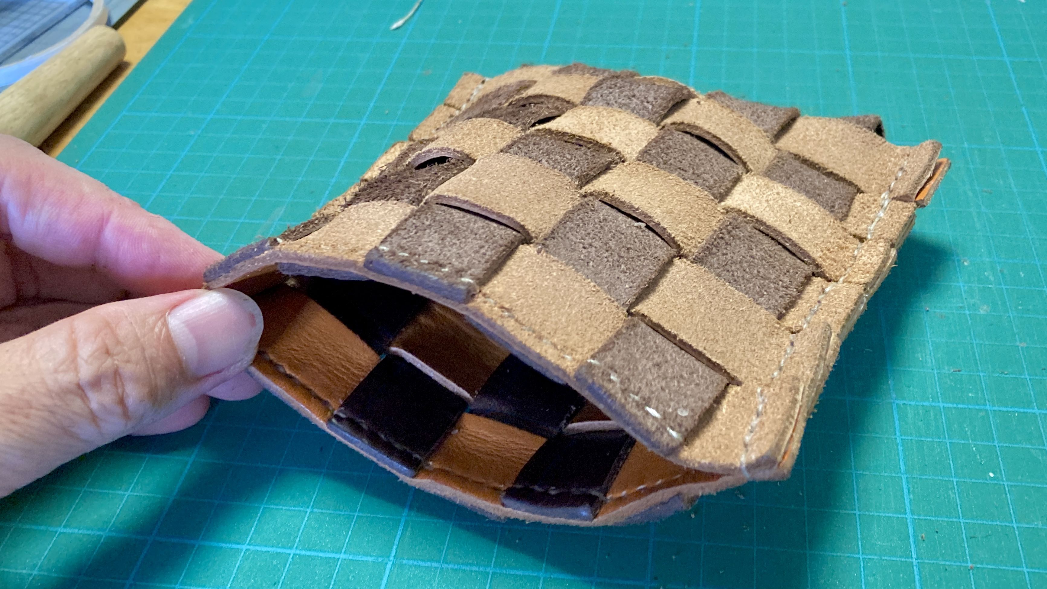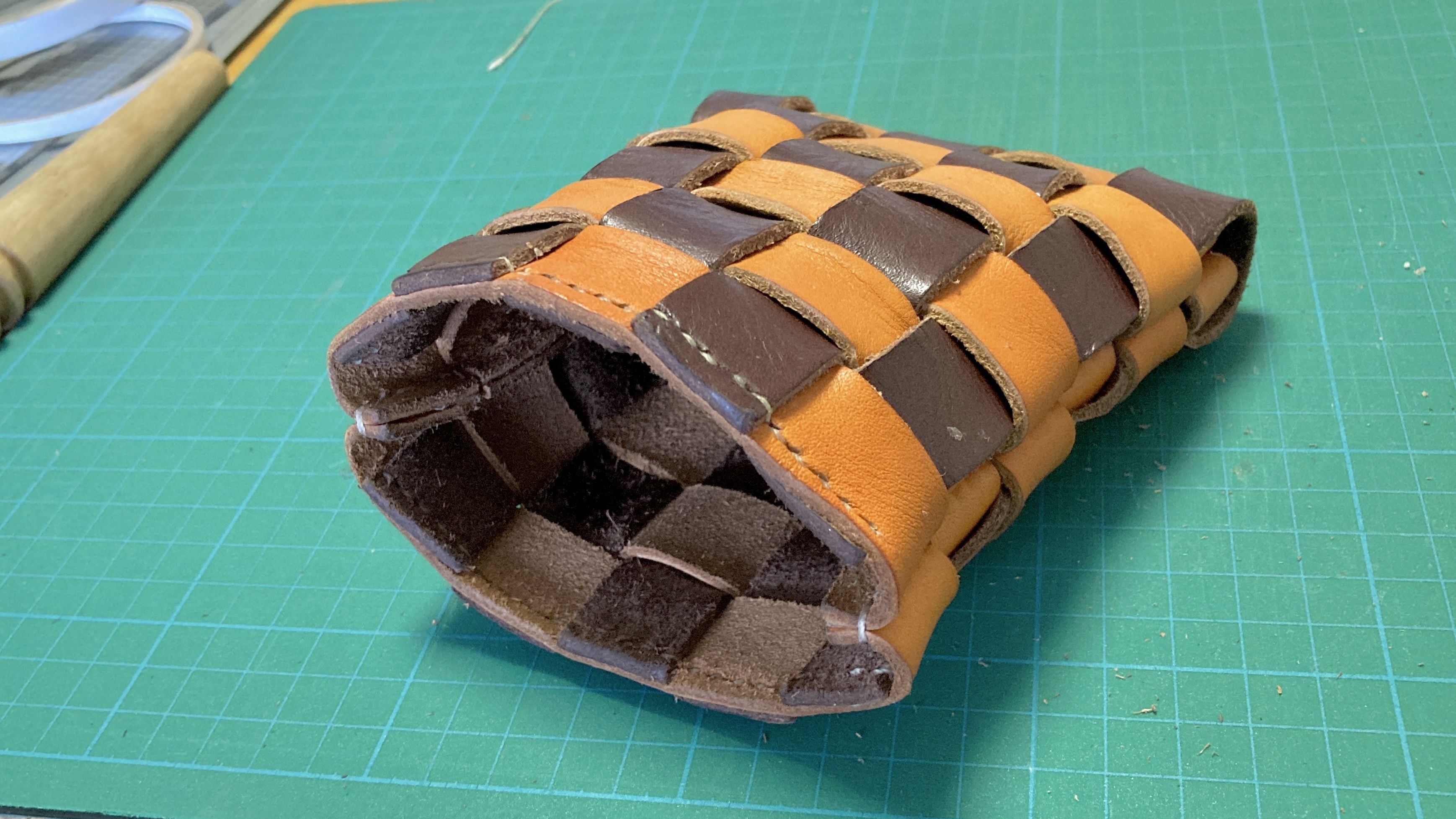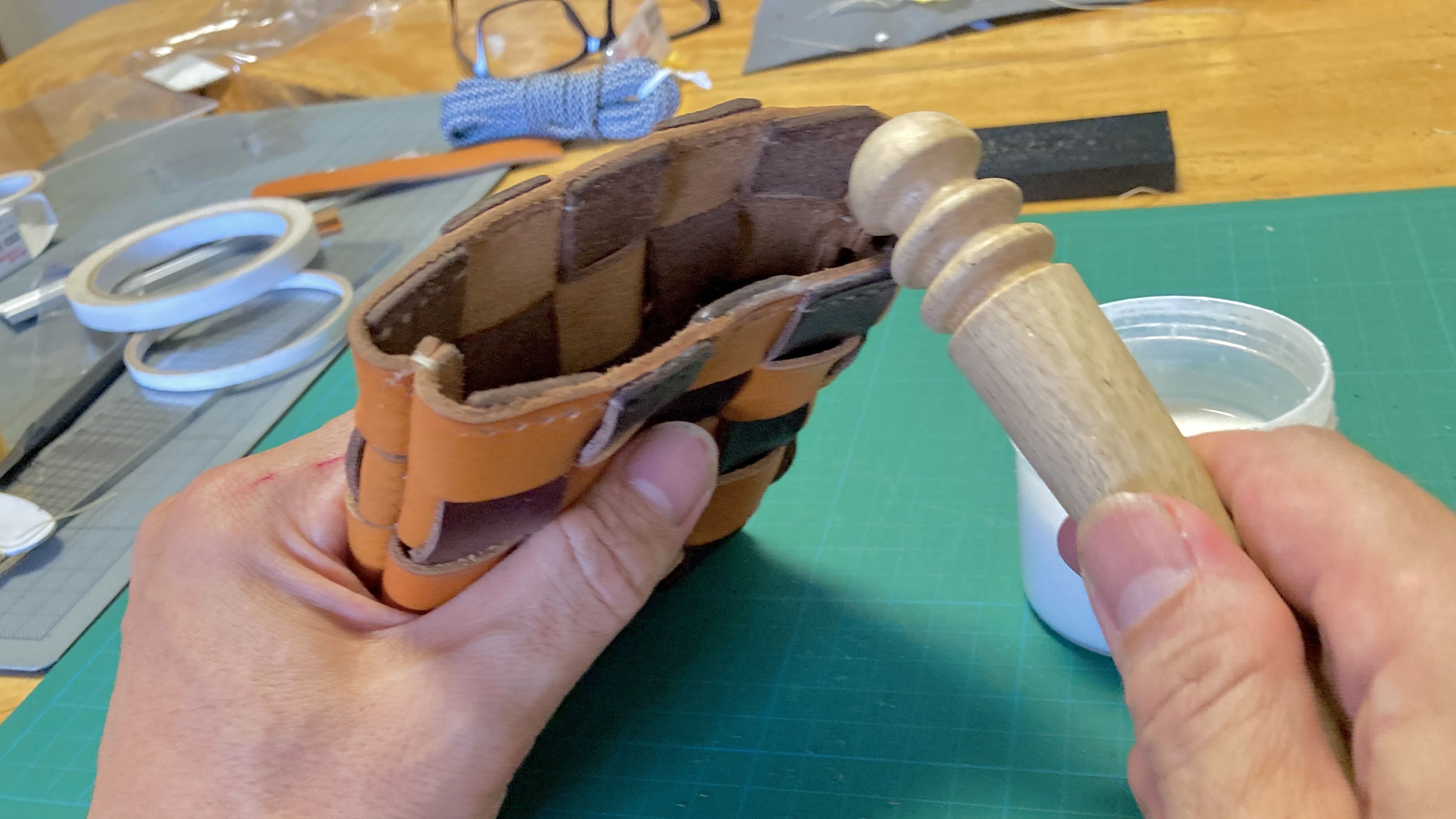 今回使用した「オイル革」は試作品よりずいぶん硬く、何度かあきらめかけたこともあったのですが、ずっと触っている内に少しやわらかくなってきました。