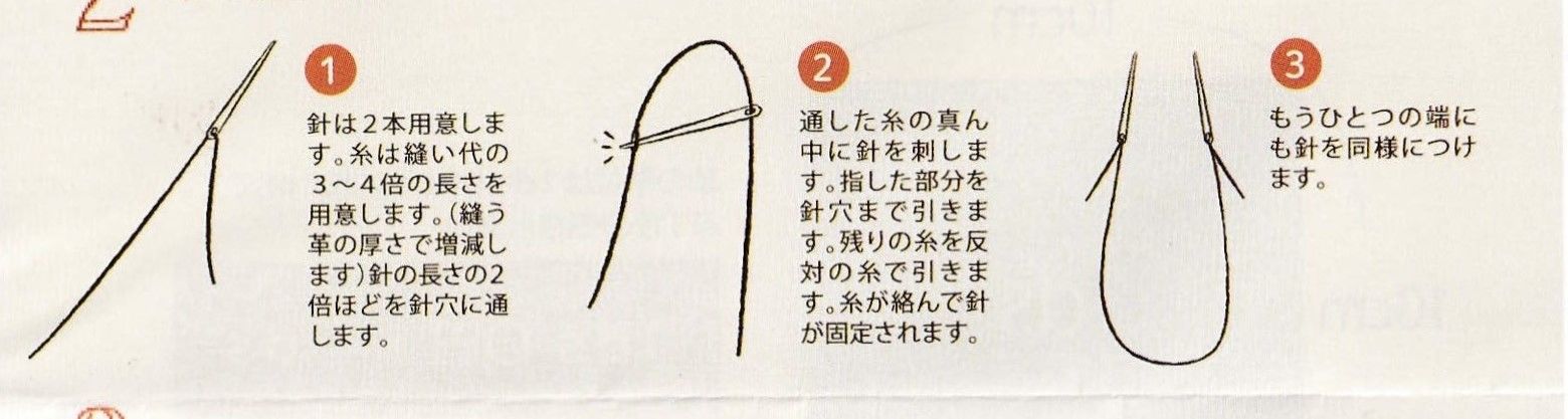 準備が出来たら縫います。糸の付け方と縫い方はこの様にします。