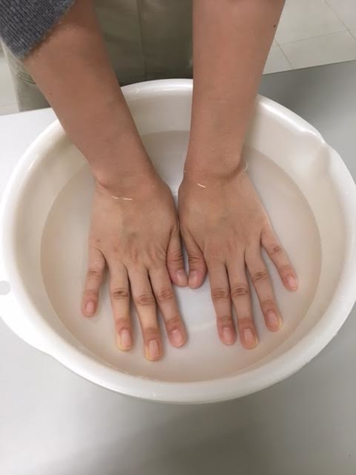 洗面器やバケツなどにお湯をはって、手をつけ手軽にアロマの香りを楽しむ方法なんです。
