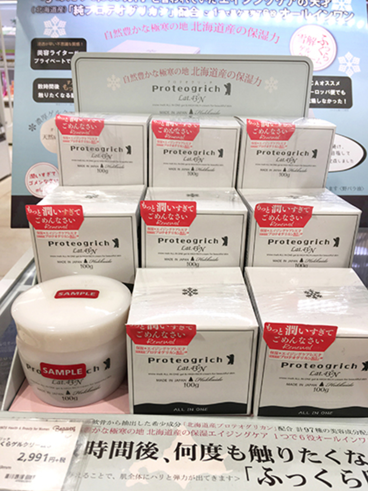 こちらはヒアルロン酸をしのぐ保湿力に優れた成分プロテオグリカンをはじめ、白樺、熊笹などの北海道の素材や上川・大雪山の麓に眠る