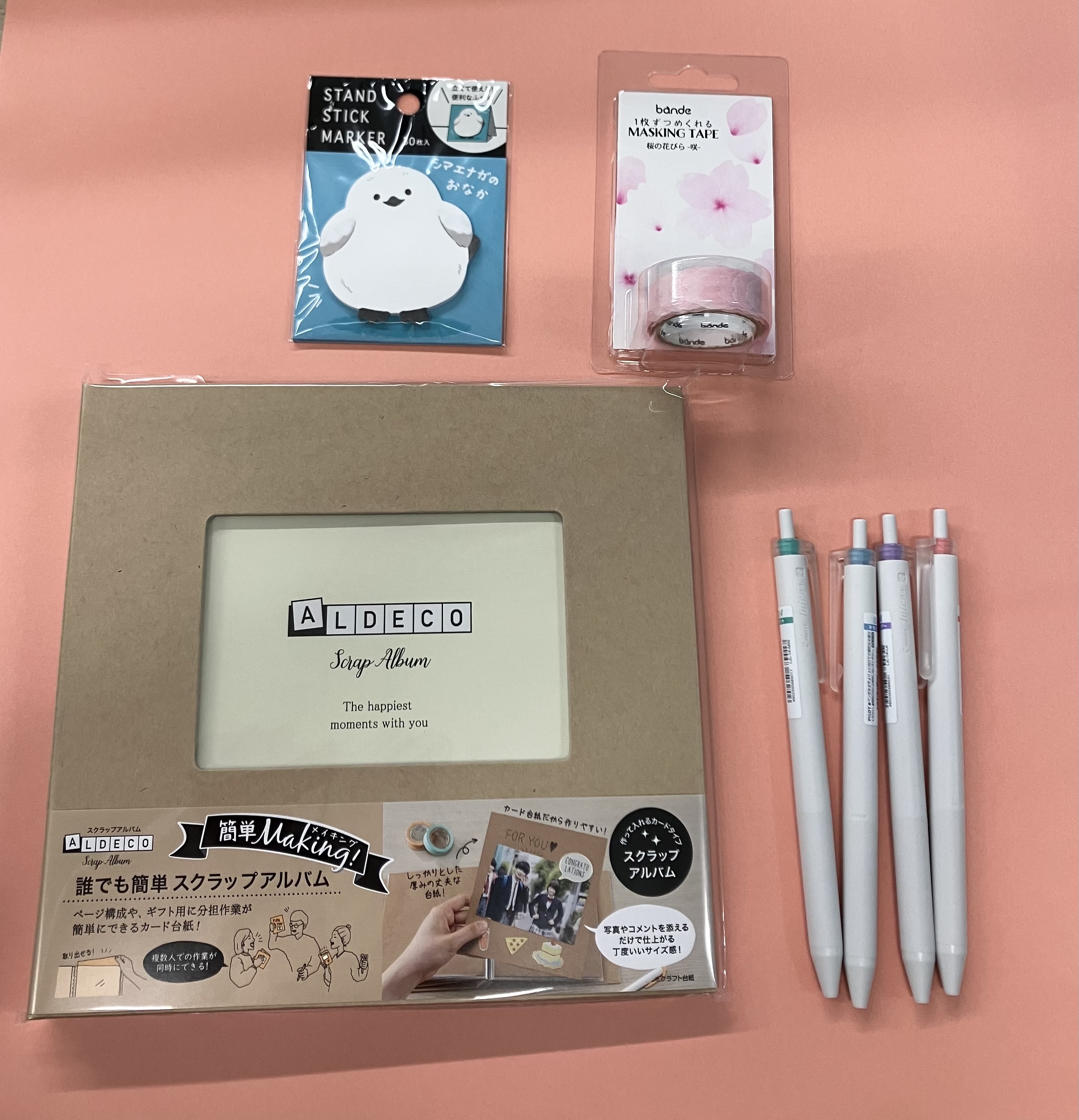 アルバムに写真を貼り、メッセージを書いた付箋を貼るだけです。