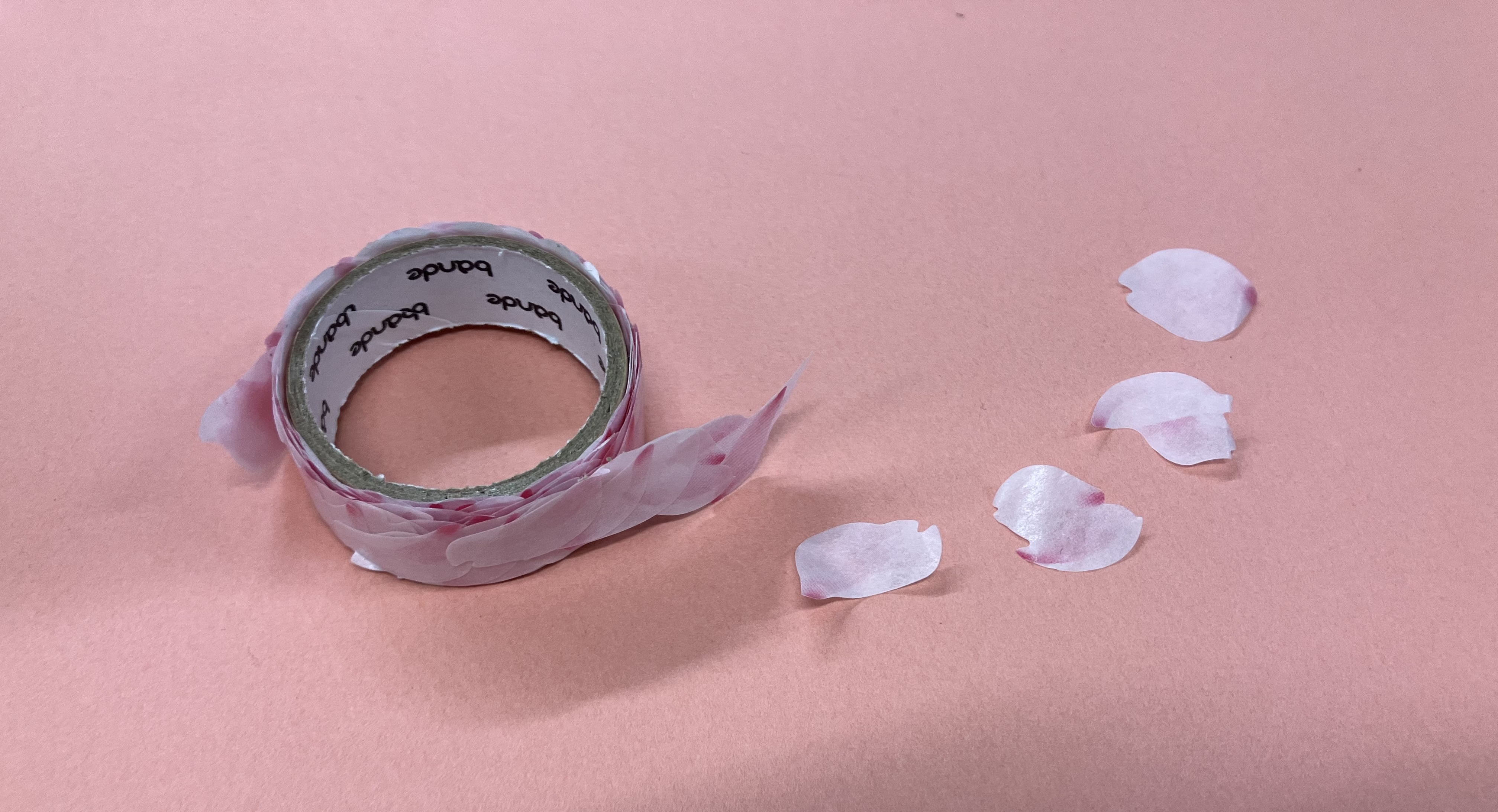 デコレーションに使用したbandeのマスキングロールステッカーは、1枚ずつめくれるステッカー。