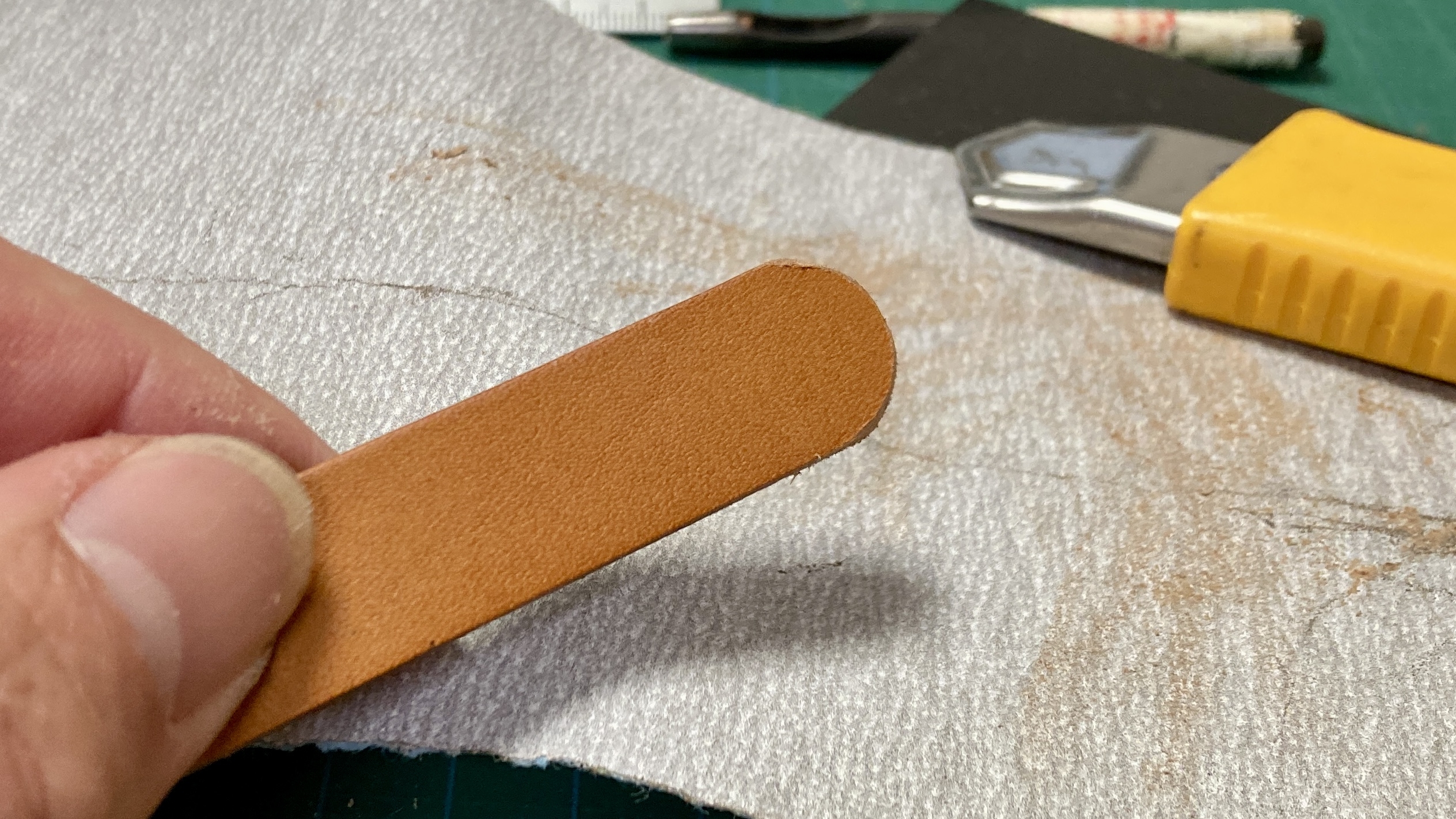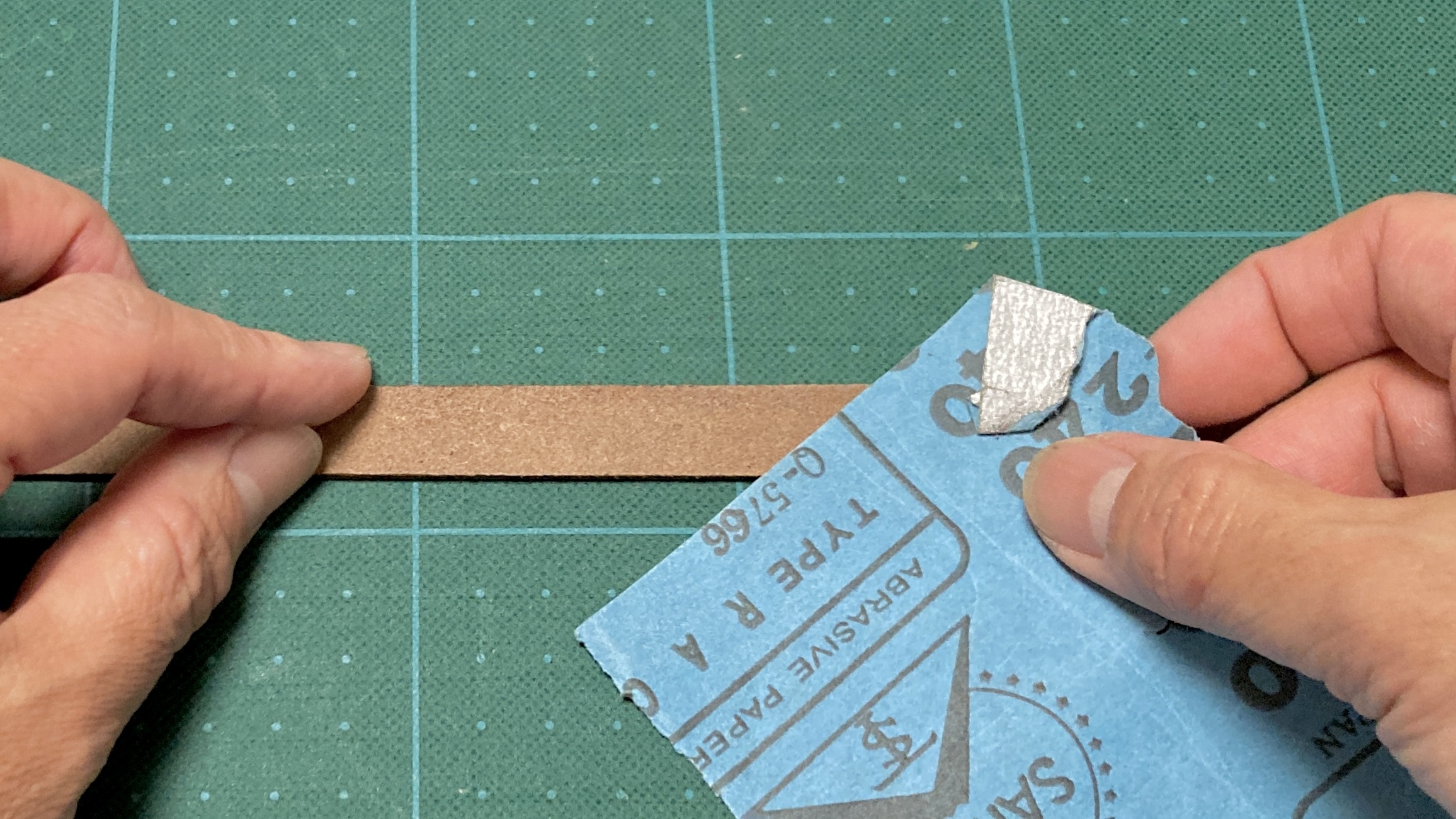 斜めに切り落とした後、荒めのサンドペーパーで丸く削ります。その後コバ磨きもしておくと質感がアップします。