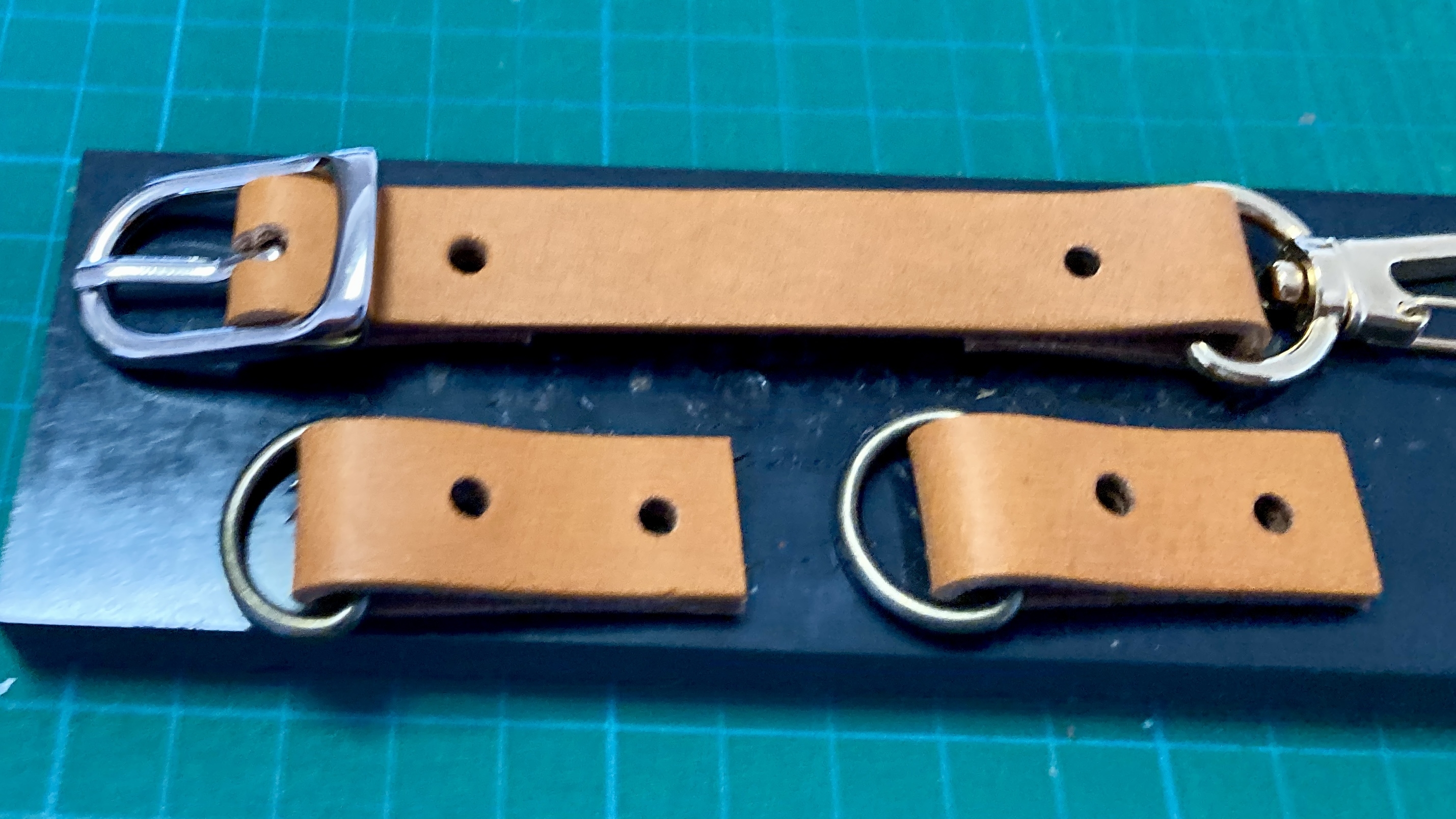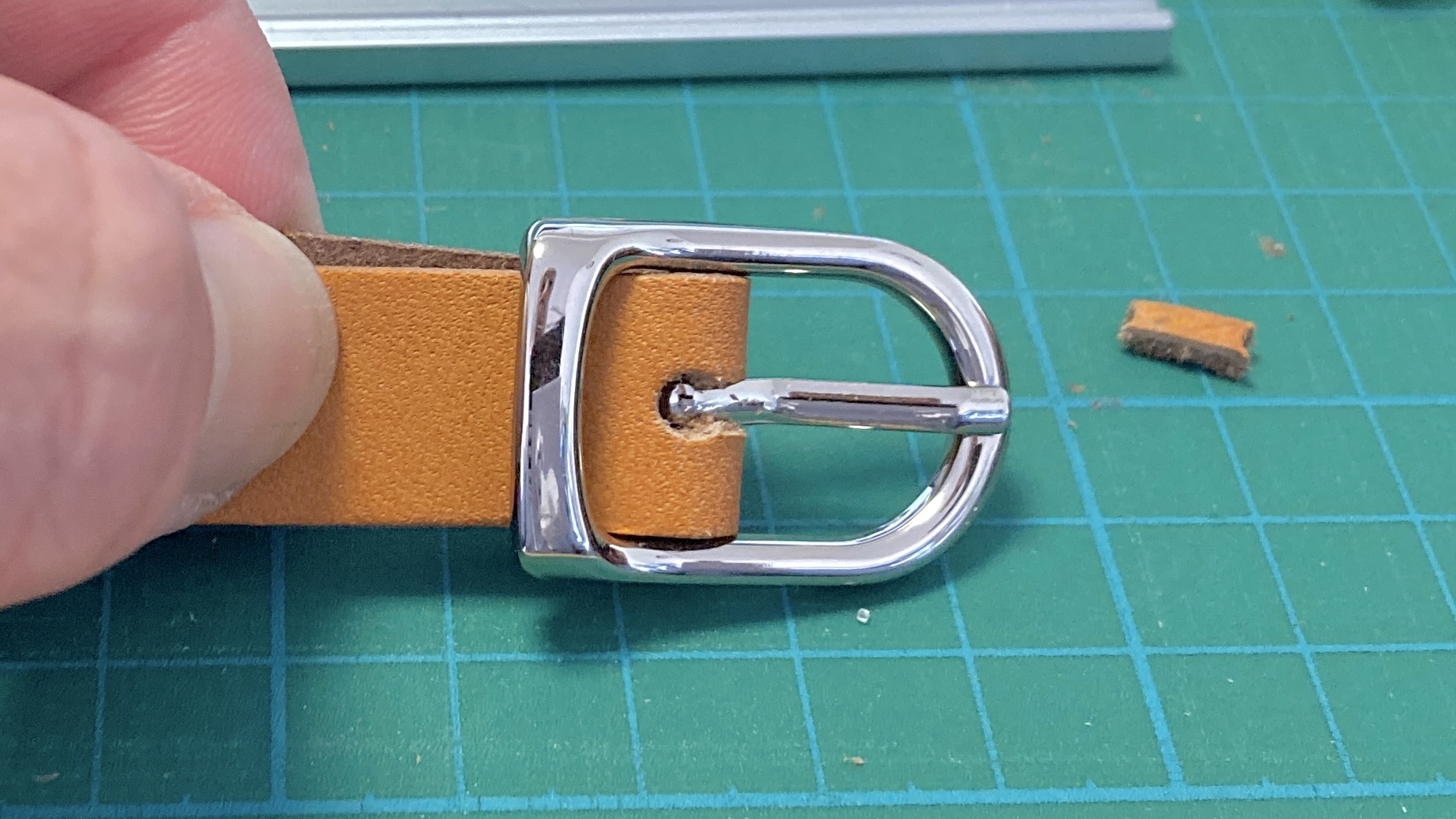 バックルは横棒を通すための長い穴を開けないと取り付けできません。