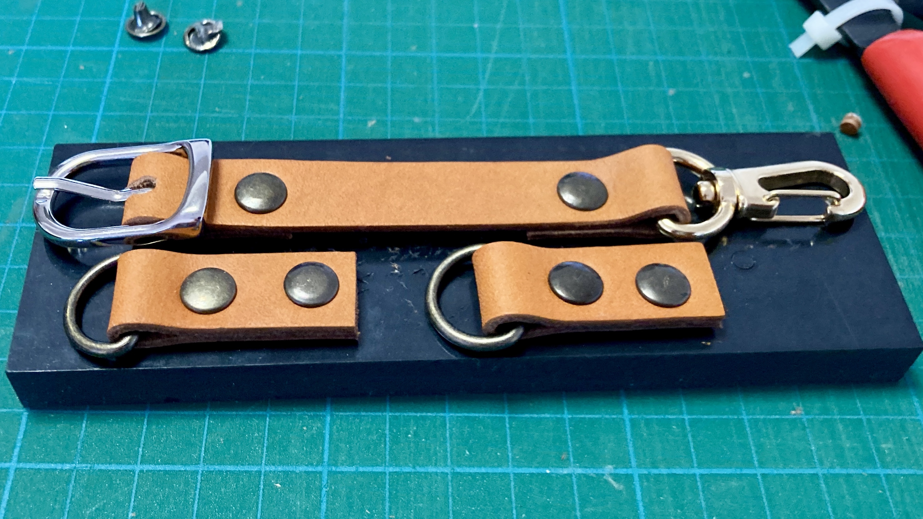 Dカンはカシメを付ける前に入れておきましょう。後から入れるのは大変です。