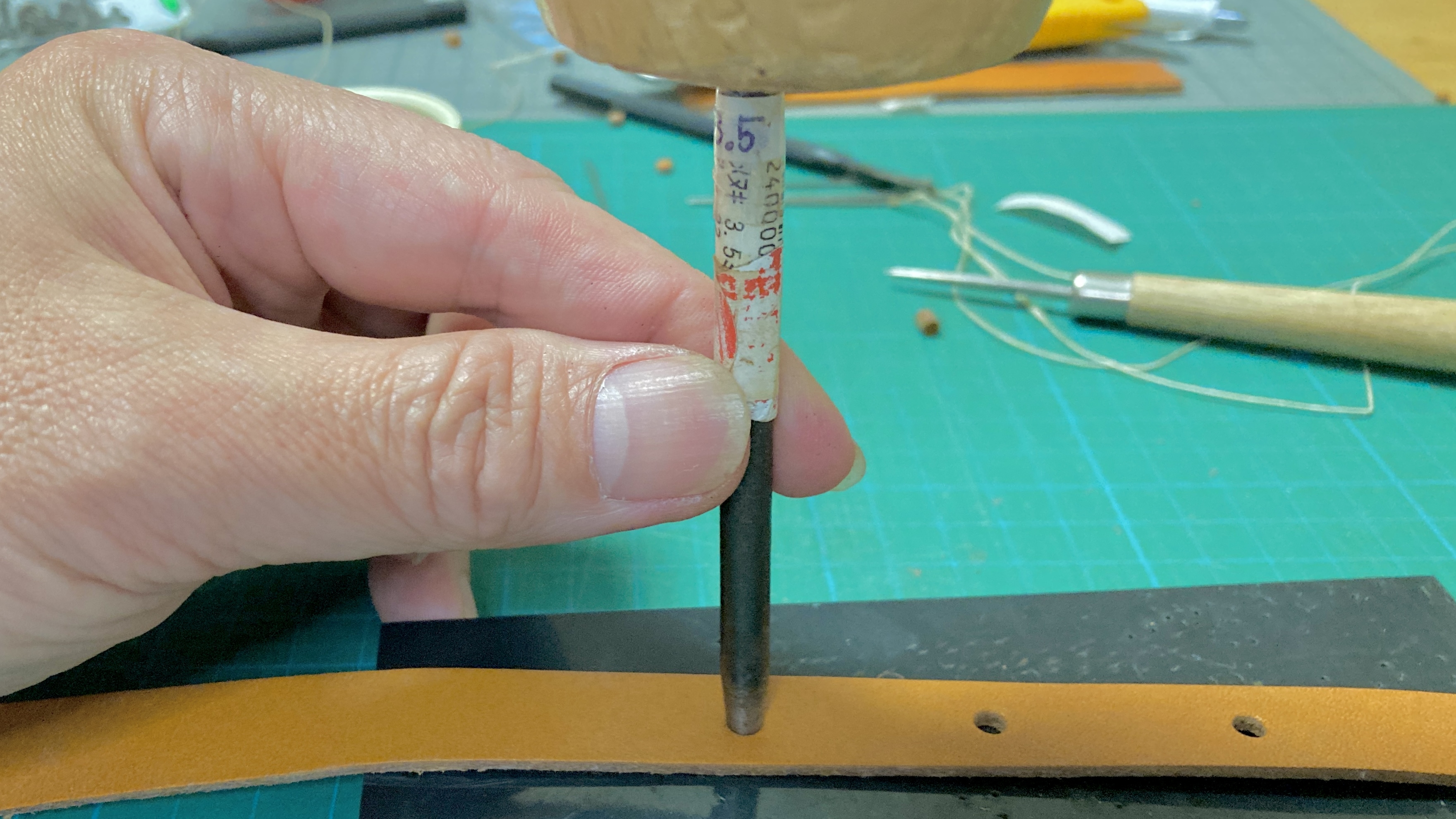 革を縫うのは、布を縫うのとずいぶん方法が違います。