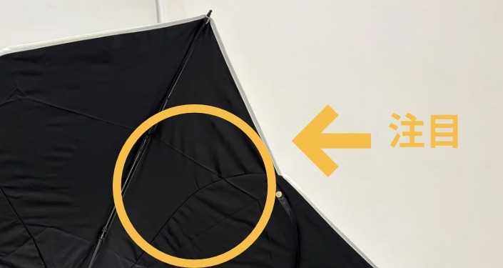 ▶メーカーの工夫でたたみやすく作っている傘◀